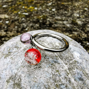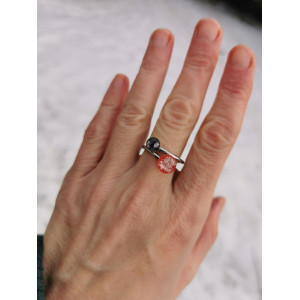 Prsten je vyrobený z nerezové oceli a skla a každý kus je originál.
