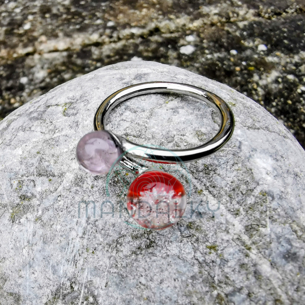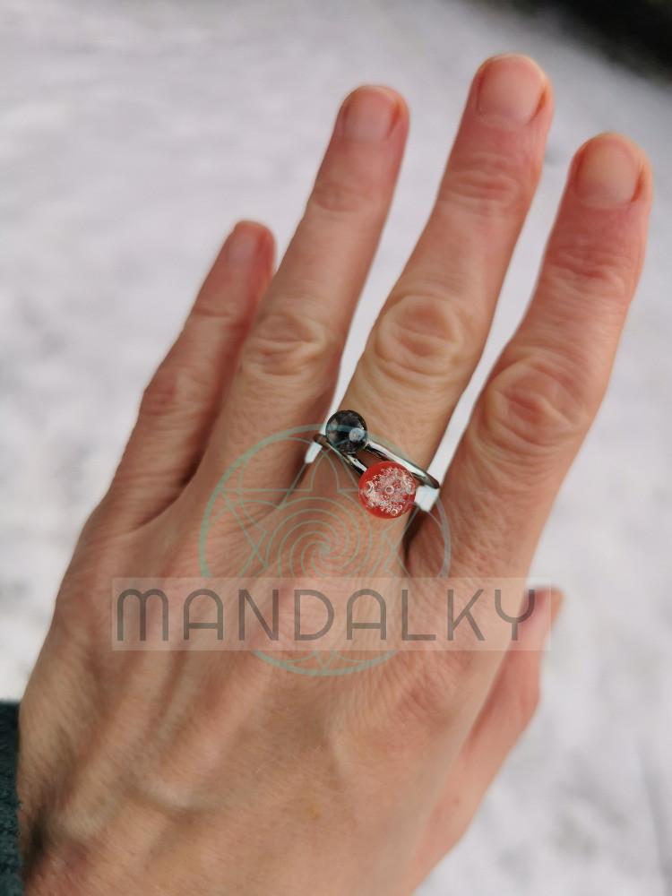 Prsten je vyrobený z nerezové oceli a skla a každý kus je originál.