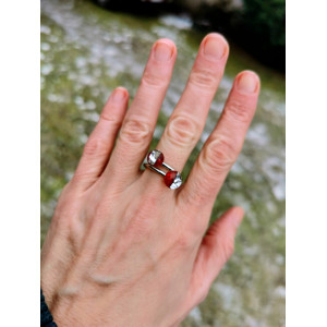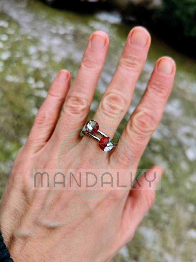Prsten je vyrobený z nerezové oceli, skla a stříbra. Každý kus je originál.