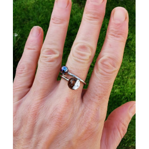 Prsten je vyrobený z nerezové oceli a skla a každý kus je originál.