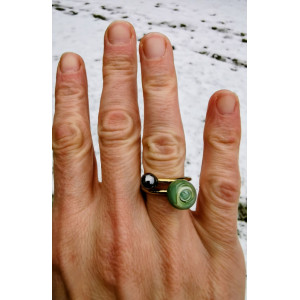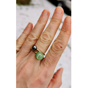 Prsten je vyrobený z nerezové oceli (pozlacená varianta) a skla. Každý kus je originál.