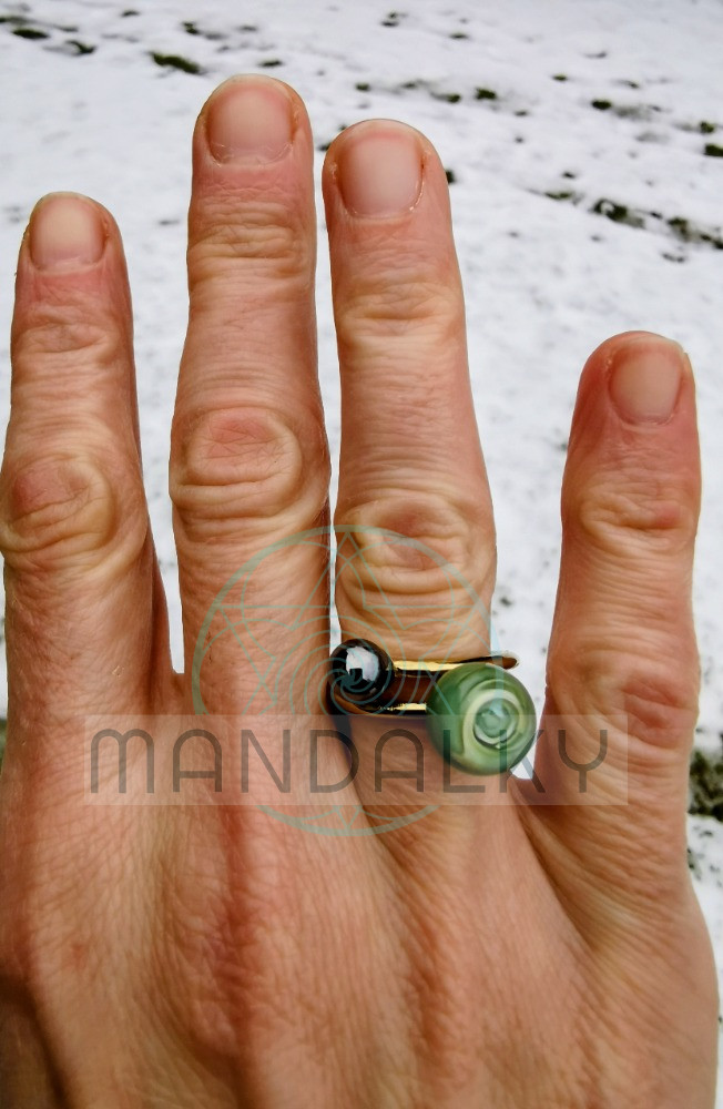 Prsten je vyrobený z nerezové oceli (pozlacená varianta) a skla. Každý kus je originál.