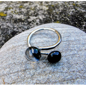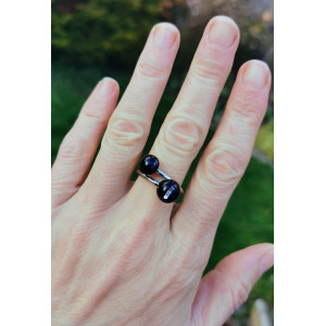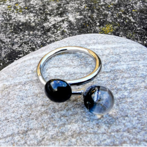 Tento prsten nese energii tajemství a ticha, které má svou vlastní sílu. Nerezová šína je čistá a pevná, jako hranice mezi světlem a nocí, a na ní dvě kuličky — každá jiná, a přesto jedna duše.