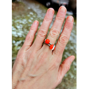 Prsten je vyrobený z nerezové oceli, skla a stříbra. Každý kus je originál.