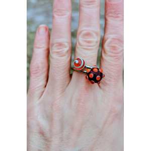 Prsten je vyrobený z nerezové oceli, skla a stříbra. Každý kus je originál.