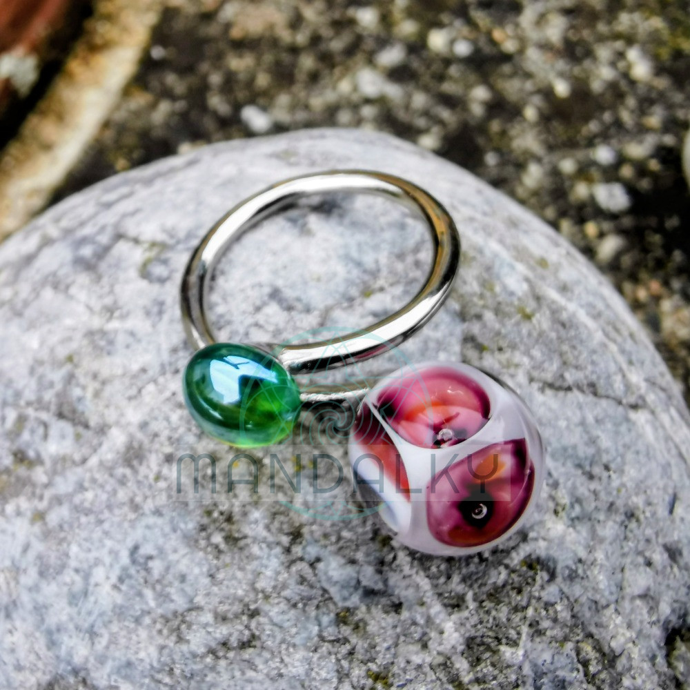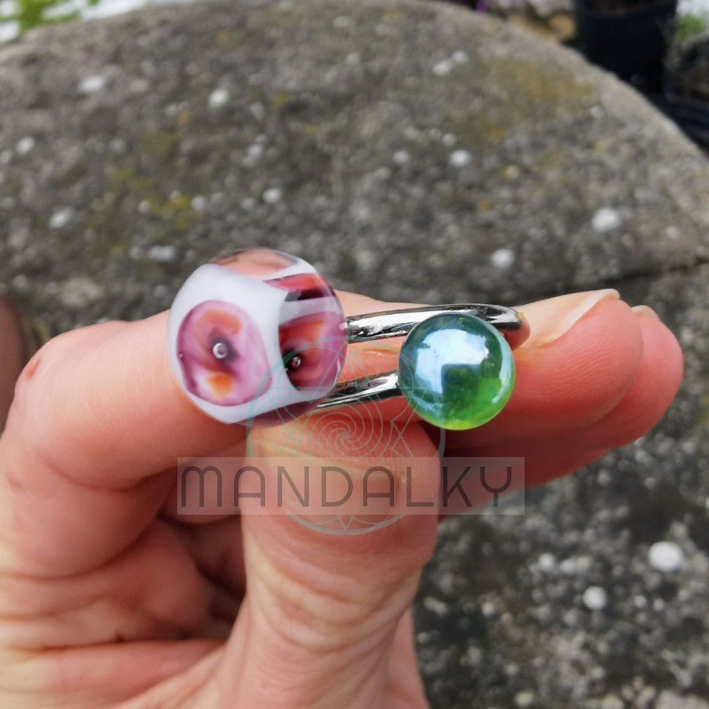 Tento prstýnek je jako malý zahradní zázrak zachycený ve skle.