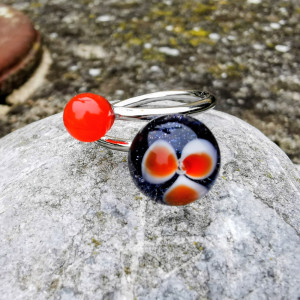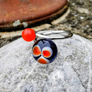 Prsten je vyrobený z nerezové oceli a skla. Každý kus je originál.