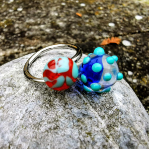 Prsten je vyrobený z nerezové oceli a skla. Každý kus je originál.